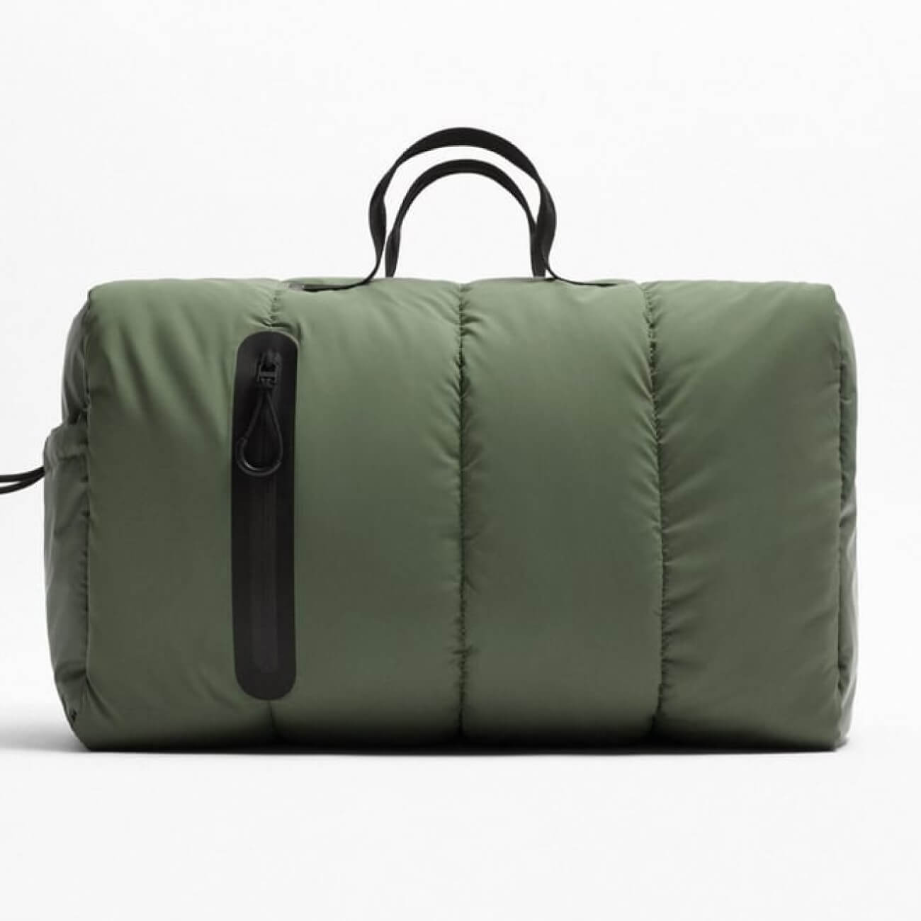 Soft rubberized backpack available in several colors. Features a front zip pocket, two side pockets, a handle and two adjustable straps. Inside there is a zippered pocket and a pocket for electronic devices and laptops up to 13 inches. The upper part folds forward and fastens with magnets. The main compartment is closed with a hermetic zipper.